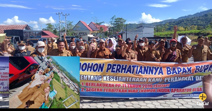 Aksi demontrasi yang dilakukan Seluruh Perangkat Desa Se-kabupaten Kerinci ini menuntut Pemerintah Kabupaten Kerinci untuk menerapkan Peraturan Pemerintah yaitu ;