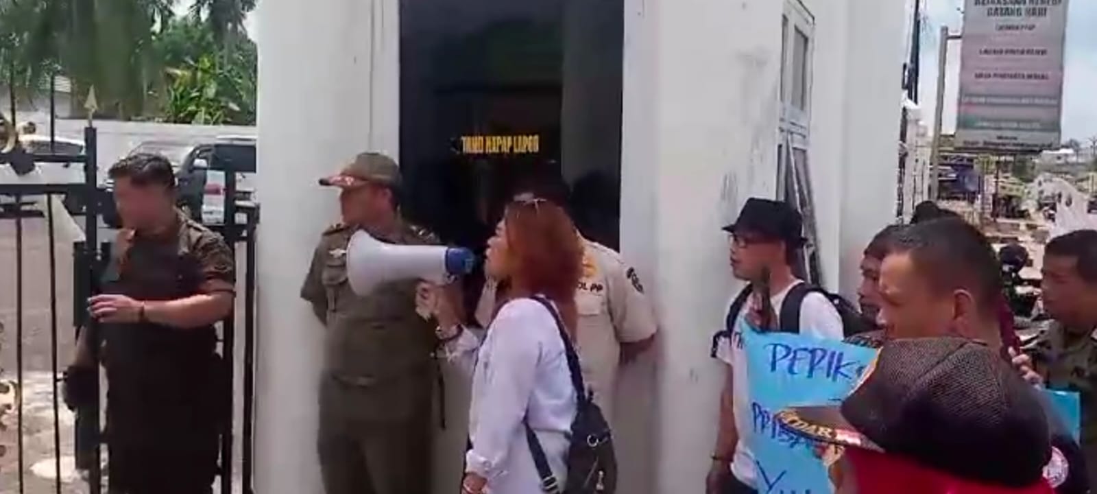Para demonstran yang di pimpin lansung oleh Korlap ketua LCKI Batanghari Yernawita, SH menyampaikan aspirasi terkait dugaan penyelewengan Biaya operasional Sekolah(BOS) SDN 182/I Hutan lindung, kecamatan muara bulian kabupaten batanghari tahun 2023