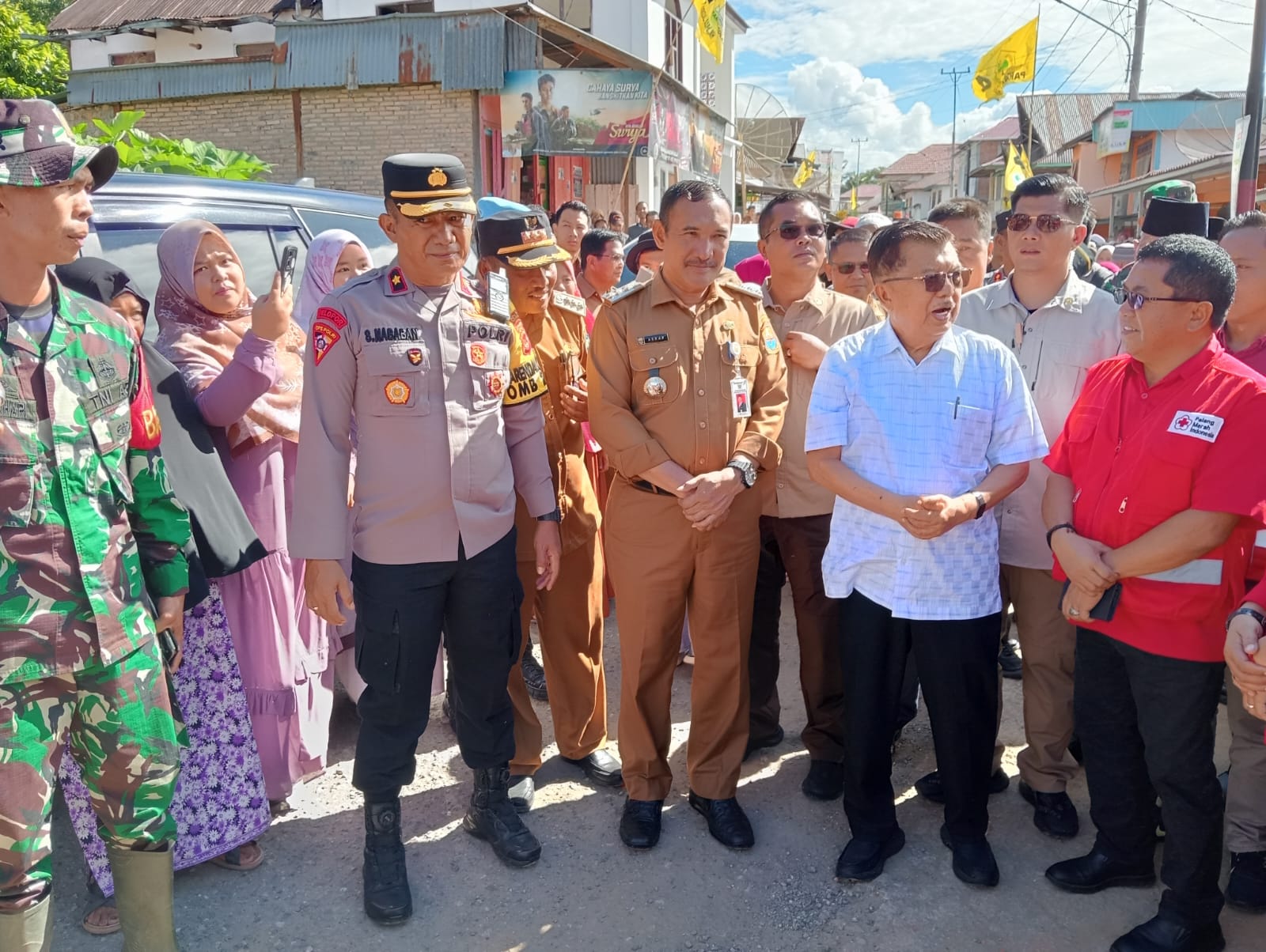 Selanjutnya Kapolres Kerinci beserta rombongan Jusuf Kalla dan Staf bersama sama mengunjungi warga korban yang terdampak banjir di Kecamatan Tanah Cogok.