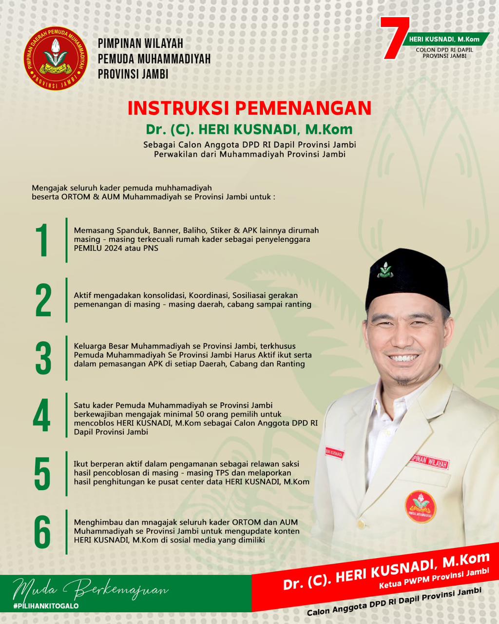 Tidak sampai disitu saja, bahkan Aktivis Muda Provinsi Jambi ini turut di perkuat oleh instruksi pemenangan dari PW Pemuda muhammadiyah jambi.