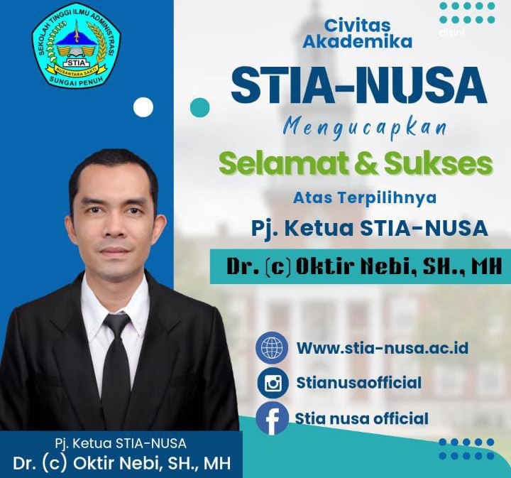 Sementara itu, PJ Ketua STIA NUSA Oktir Nebi, mengucapkan terima kasih atas dukungan dan kepercayaan semua pihak yang telah mempercayai dirinya untuk meneruskan amanah sebagai Ketua STIA NUSA Sungai Penuh, Meskipun meyakini bahwa amanah yang diberikan tidak begitu ringan.