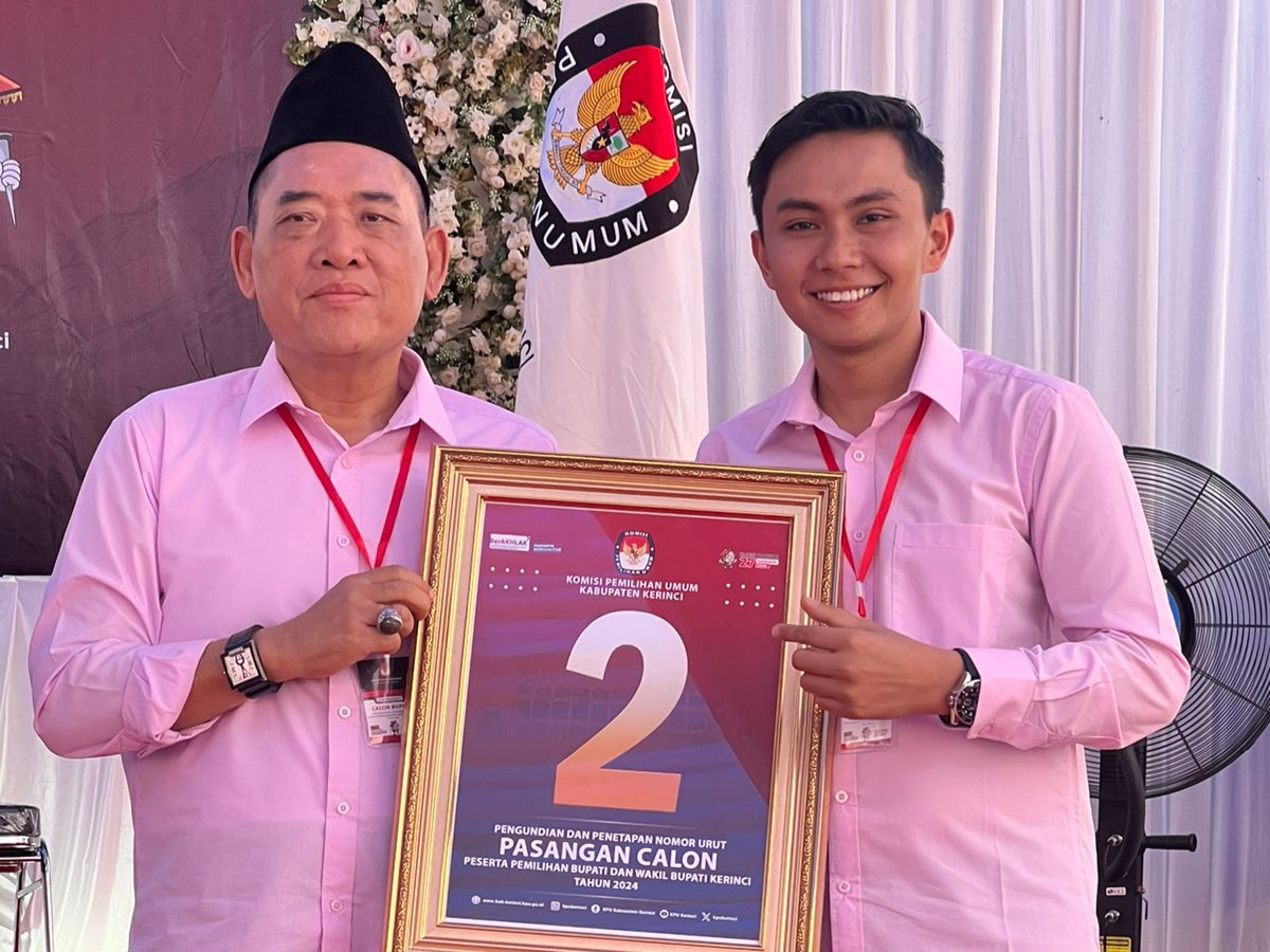KERINCI – Pasangan calon Bupati dan Wakil Bupati Kerinci H. Tafyani Kasim dan Ezi Kurniawan mendaptkan nomor urut 2 (Dua) saat pencabutan nomor urut di KPU Kerinci, Senin (23/9/2024) siang ini.