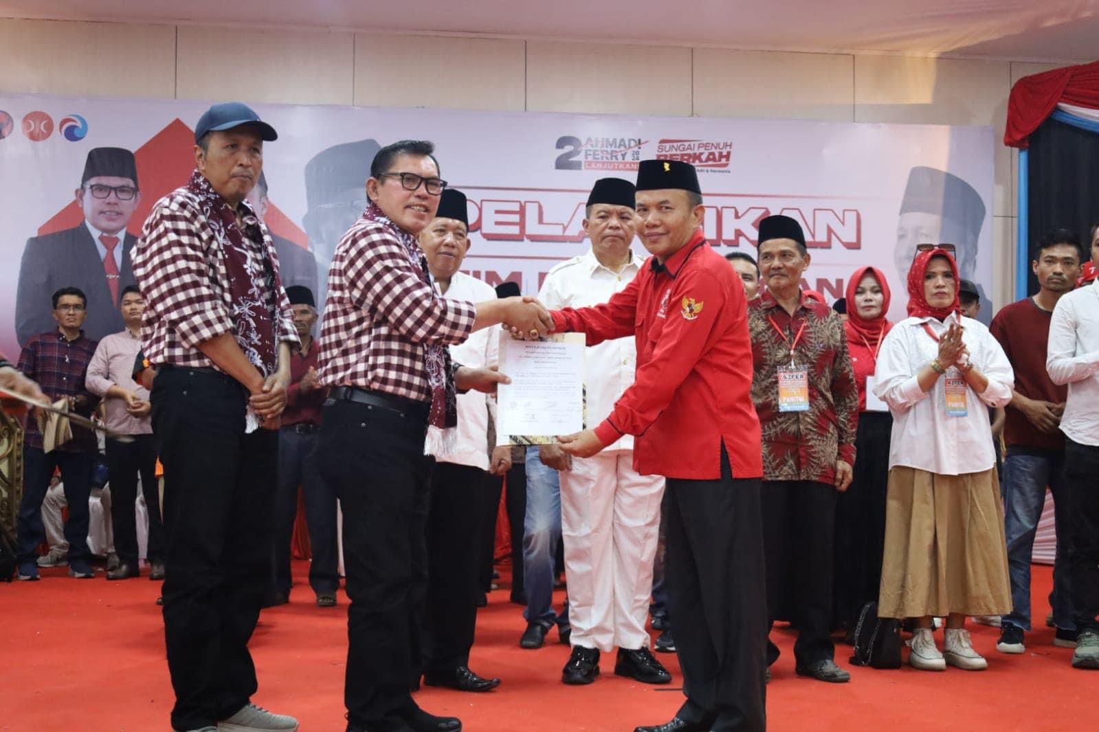 SUNGAIPENUH– Ketua DPC Partai Demokrasi Indonesia Perjuangan, Hardizal dilantik menjadi Ketua Tim Kampanye (Koalisi) Ahmadi Zubir-Ferry Satria (AZ-FER), Minggu (29/9) di Gedung Nasional kota Sungaipenuh.