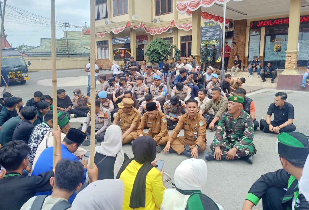 Aksi berlangsung damai. Satu per satu orator bergantian berteriak lantang, menyampaikan keresahan sekaligus harapan mahasiswa terhadap institusi kepolisian. Meski berjumlah besar, massa tetap tertib, duduk rapi memenuhi halaman Mapolres Kerinci, sembari sesekali disambut tepuk tangan solidaritas. Begitupun Kapolres, Bupati, Wawako, Kasdim, dan Sekda, juga turut duduk bersama massa.