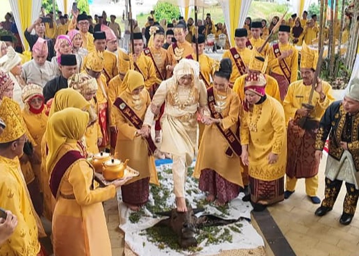 Setelah itu, acara dilanjutkan dengan cuci kaki santan bemanis, tabur beras kunyit, serta penyambutan adat oleh para tokoh masyarakat dan pengurus LAM Jambi Kabupaten Tanjung Jabung Timur. Suasana prosesi berjalan khidmat dan penuh kearifan lokal, disambut dengan antusias oleh masyarakat yang hadir menyaksikan langsung jalannya kegiatan.
