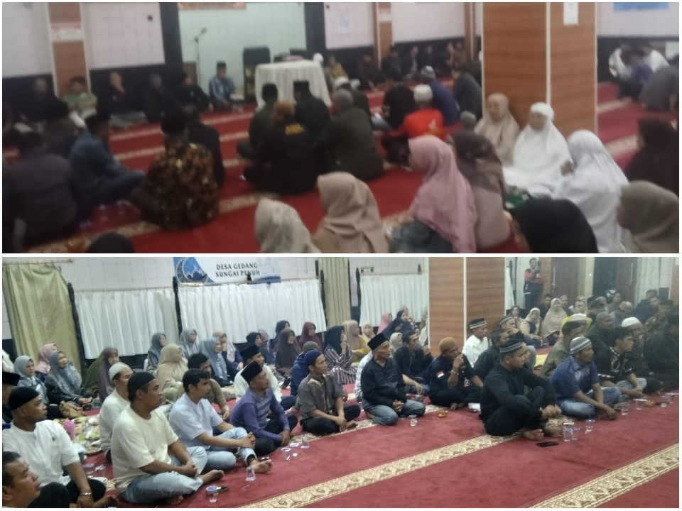 SUNGAIPENUH-Menyikapi kabar tentang pemecatan guru ngaji di TPA Mushalla Babussa’adah, Kesatuan Bayang Terusan Painan (KS BTP) bersikap. Hampir 300 orang anggota berkumpul di mushalla, Minggu (19/10) malam.