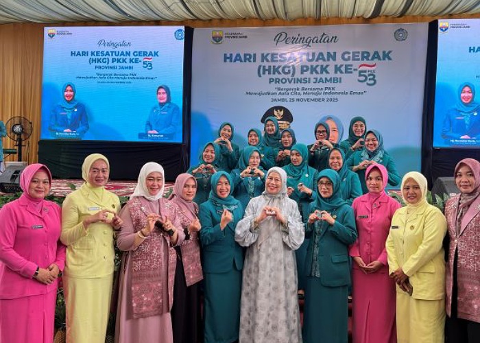 JAMBI — Peringatan HKG PKK ke-53 Tingkat Provinsi Jambi menjadi momentum penting bagi Ketua TP PKK Provinsi Jambi, Hj. Hesti Haris, untuk mengajak seluruh kader memperkuat literasi digital dan kemampuan pola asuh sesuai tantangan zaman. Kegiatan yang berlangsung di Ev Garden, Paal Merah, Selasa (25/11/2025), mengusung tema “Bergerak Bersama PKK Mewujudkan Asta Cita Menuju Indonesia Emas”.