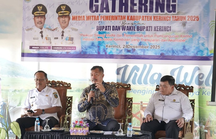 KERINCI – Pemerintah Kabupaten Kerinci terus memperkuat kemitraan dengan insan pers sebagai bagian dari strategi komunikasi pembangunan. Hal tersebut ditegaskan dalam Gathering Media Mitra Pemkab Kerinci Tahun 2025 yang digelar Dinas Komunikasi dan Informatika bersama Bupati dan Wakil Bupati Kerinci.