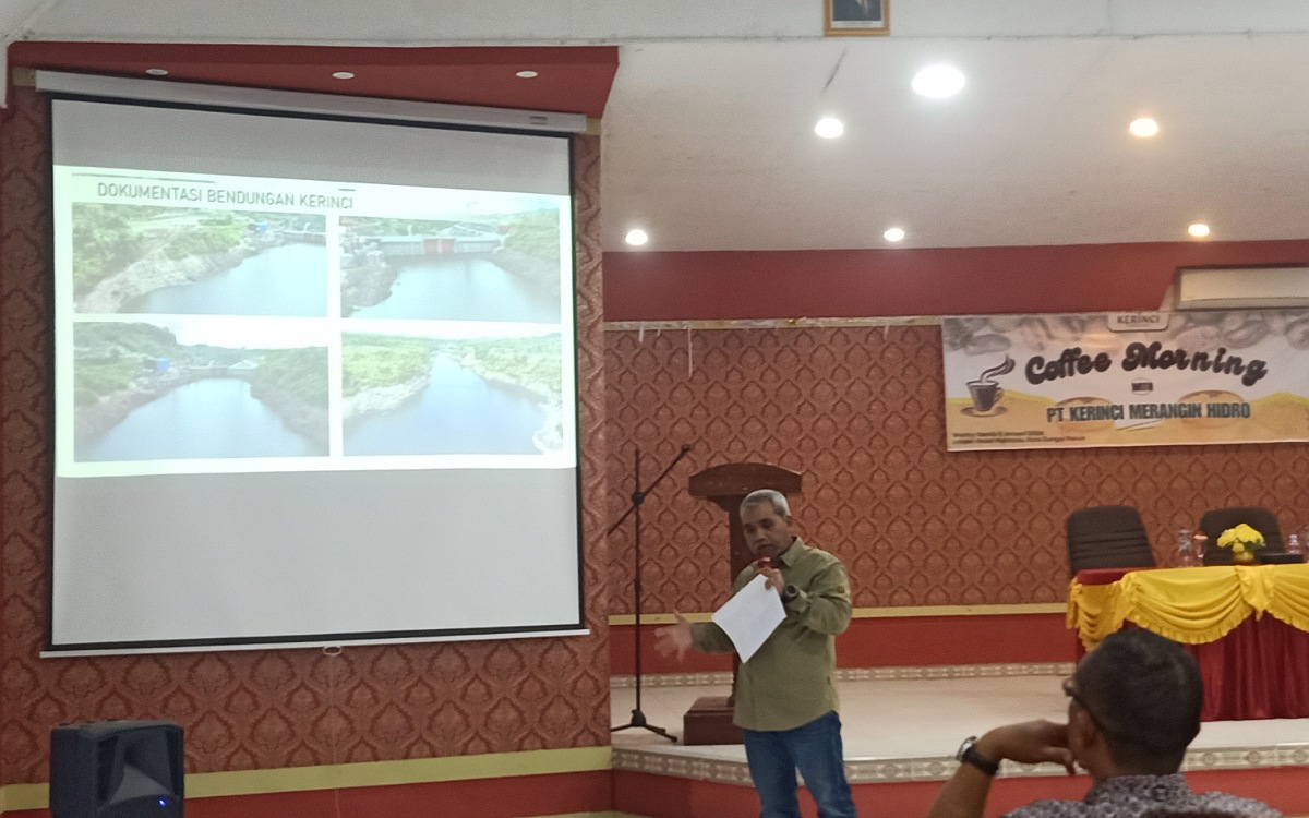 KERINCI – PT Kerinci Merangin Hidro (KMH) memberikan penjelasan terbuka terkait isu penyusutan debit air Danau Kerinci dalam kegiatan coffee morning bersama media dan LSM se-Kabupaten Kerinci dan Kota Sungai Penuh di Aula Hotel Mahkota, Kamis (5/2/2026).