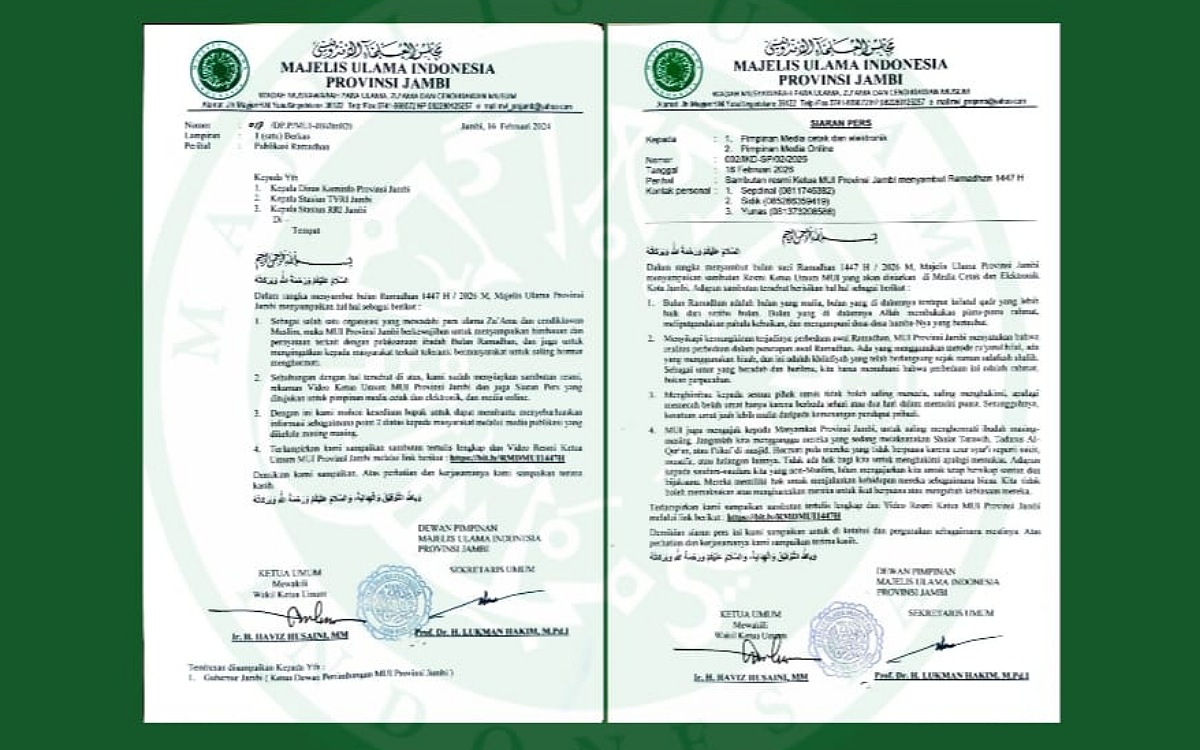 Seruan tersebut dirilis pada 16 Februari 2026 dan ditandatangani oleh jajaran pimpinan MUI Jambi, di antaranya Wakil Ketua Umum Ir. H. Haviz Husaini, MM dan Sekretaris Umum Prof. Dr. H. Lukman Hakim, M.Pd.I. Dalam pernyataannya, MUI menegaskan bahwa Ramadhan bukan hanya momentum ritual ibadah, tetapi juga sarana memperbaiki kualitas akhlak dan mempererat kepedulian sosial.